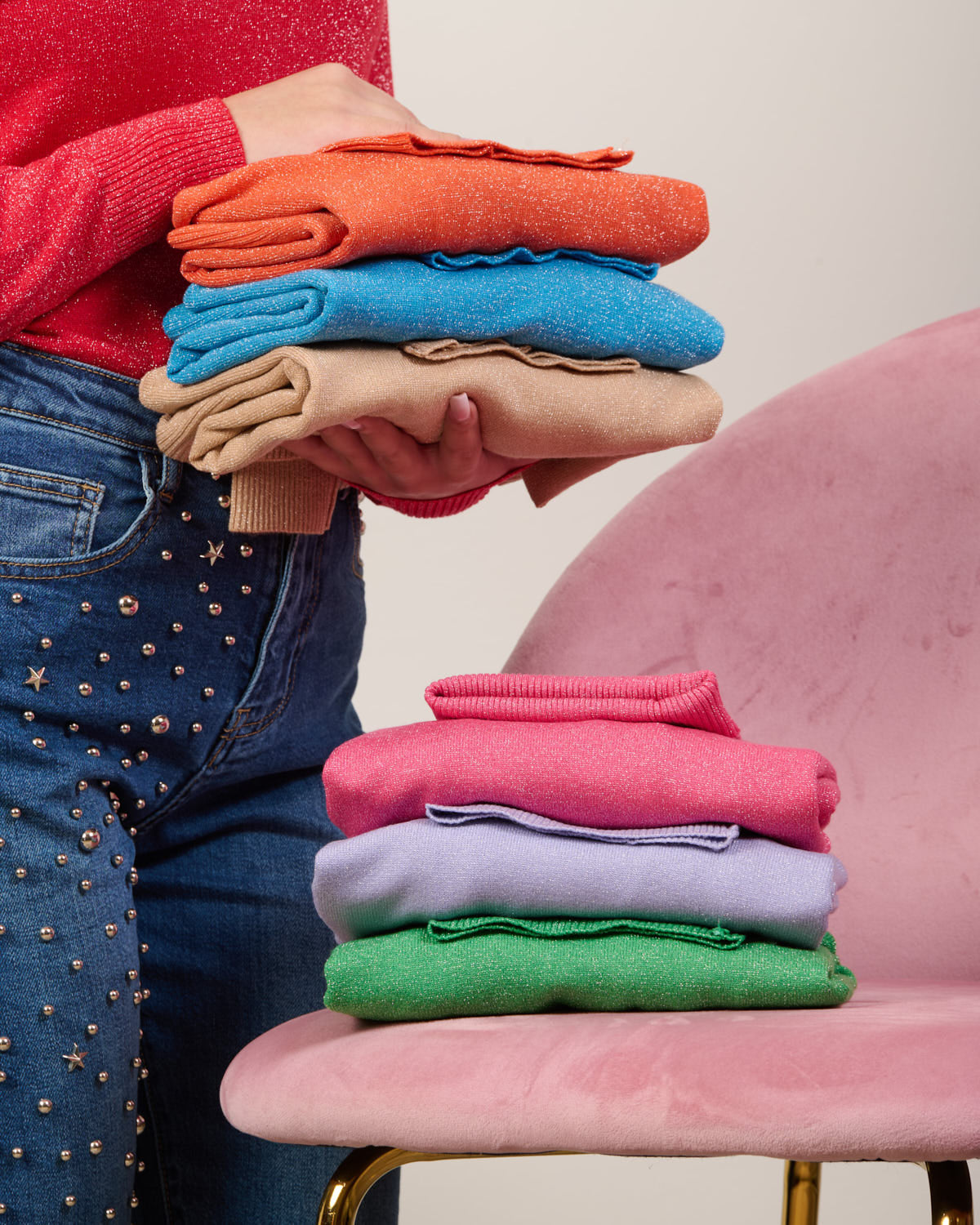 Maglia linea basic, modello collo alto GLITTER.