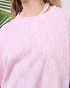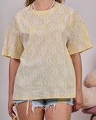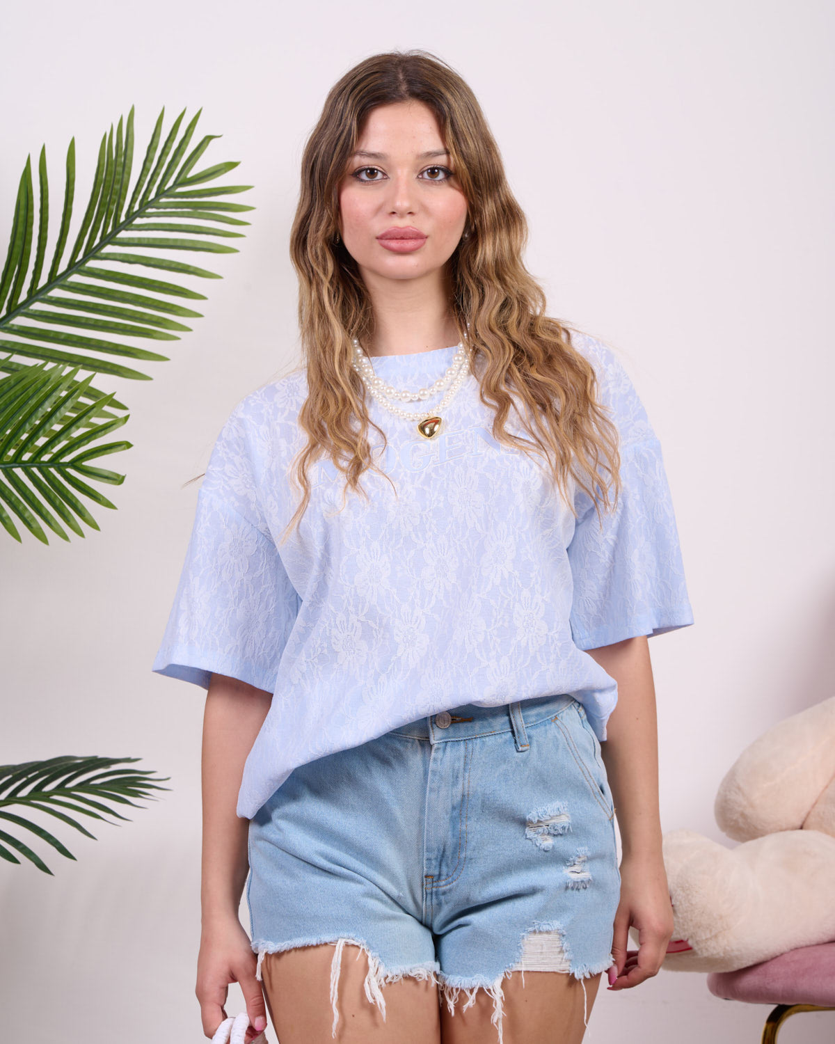 Maglia con effetto pizzo e scritta cucita sul davanti. Vestibilità non aderente, in taglia unica veste fino a 48/50. Top quality