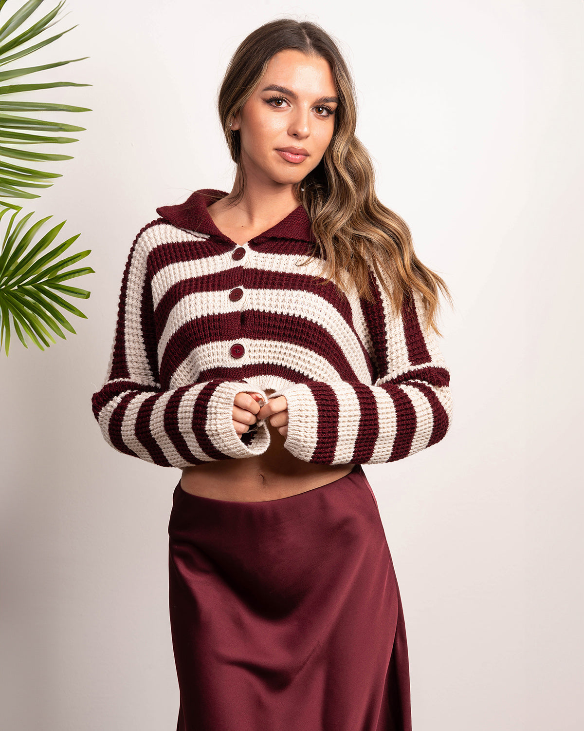Maglioncino cropped con bottoncini sul davanti, taglia unica veste fino a taglia 46/48.