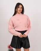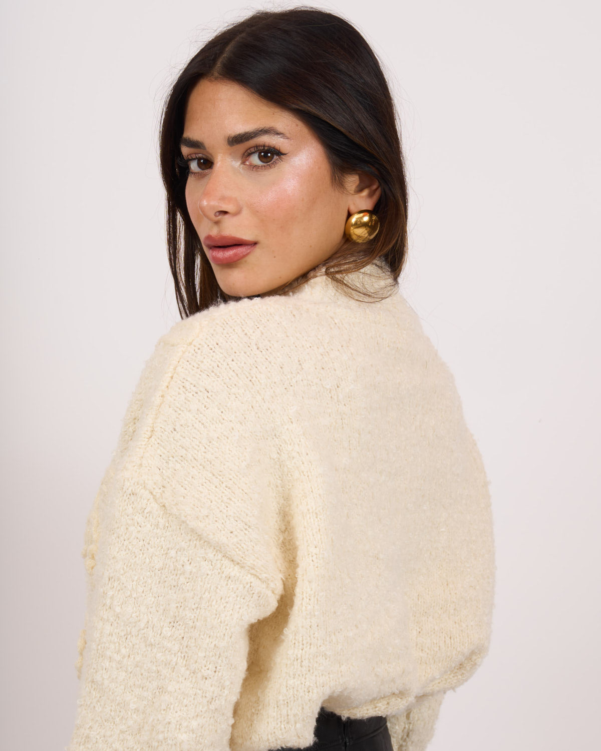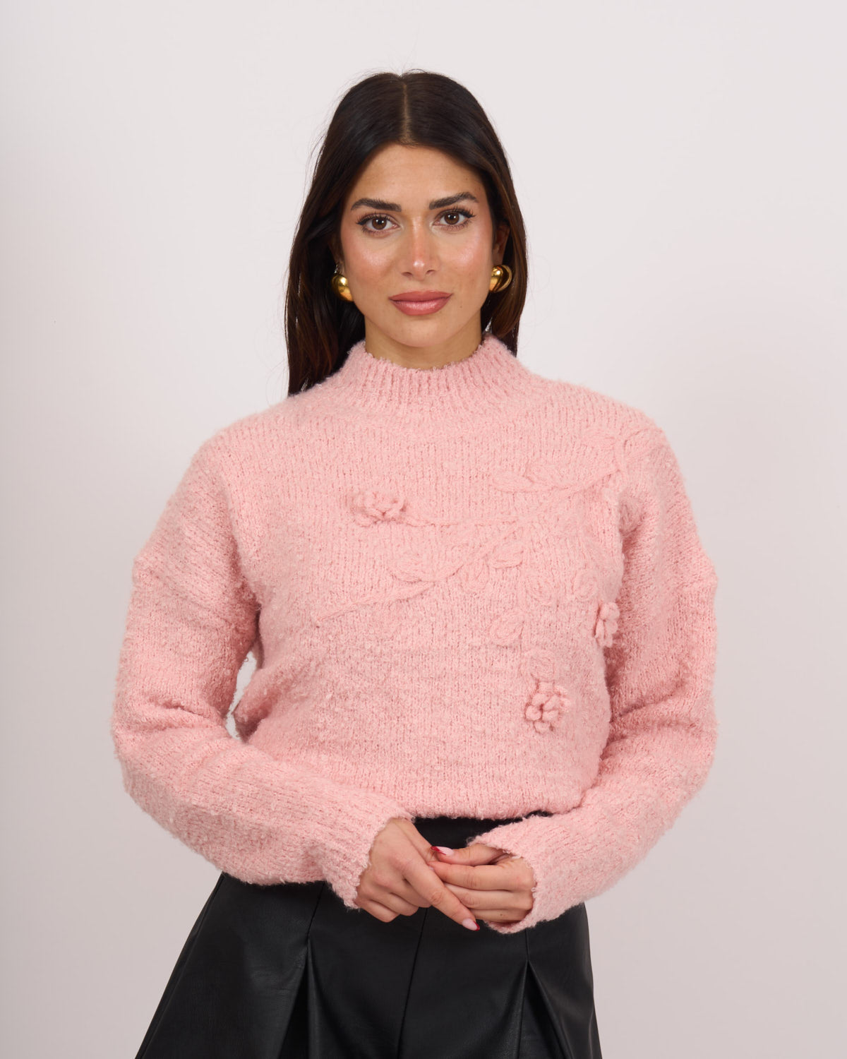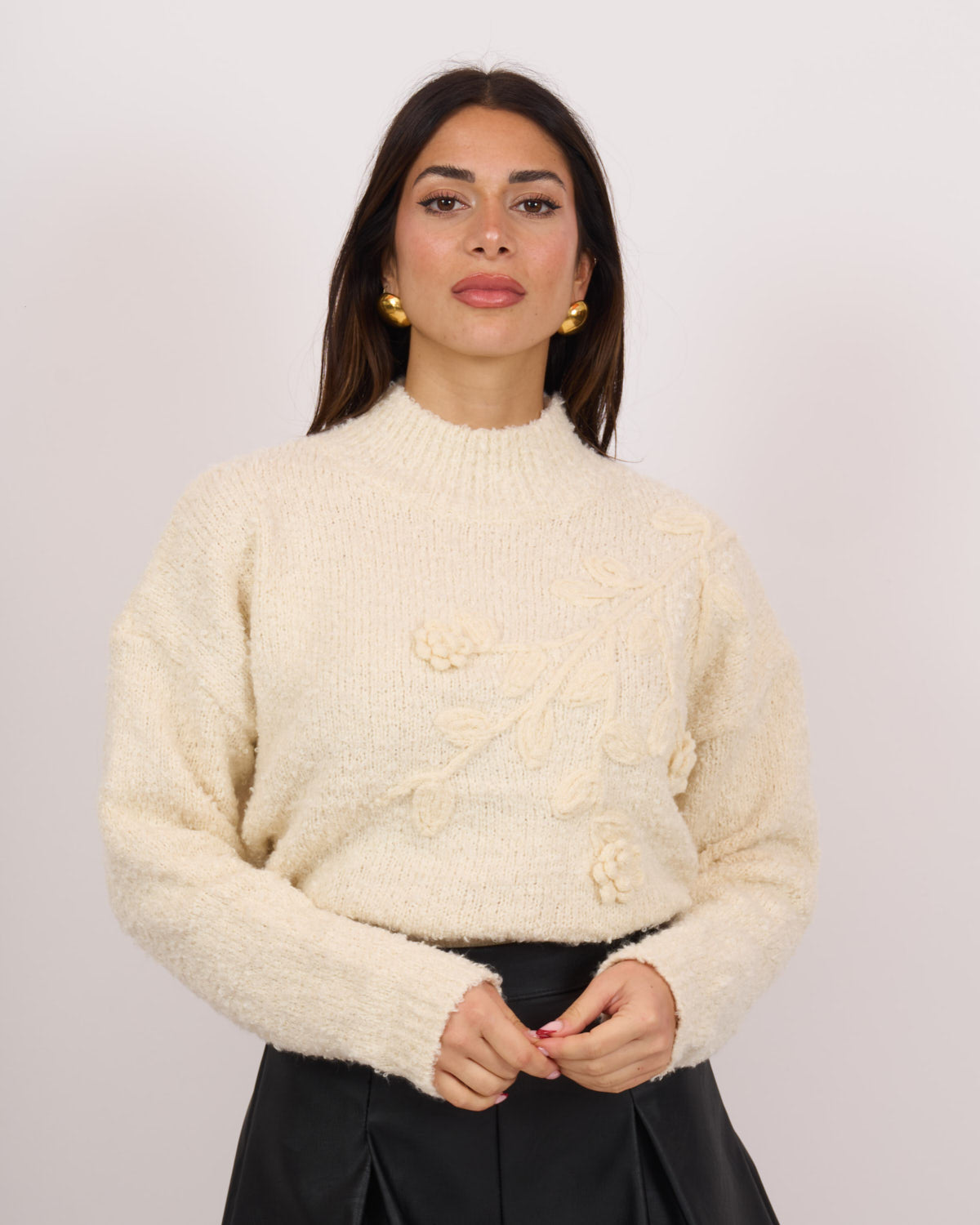 In morbida lana con fiori in rilievo sul davanti. Taglia unica veste fino a 46/48.